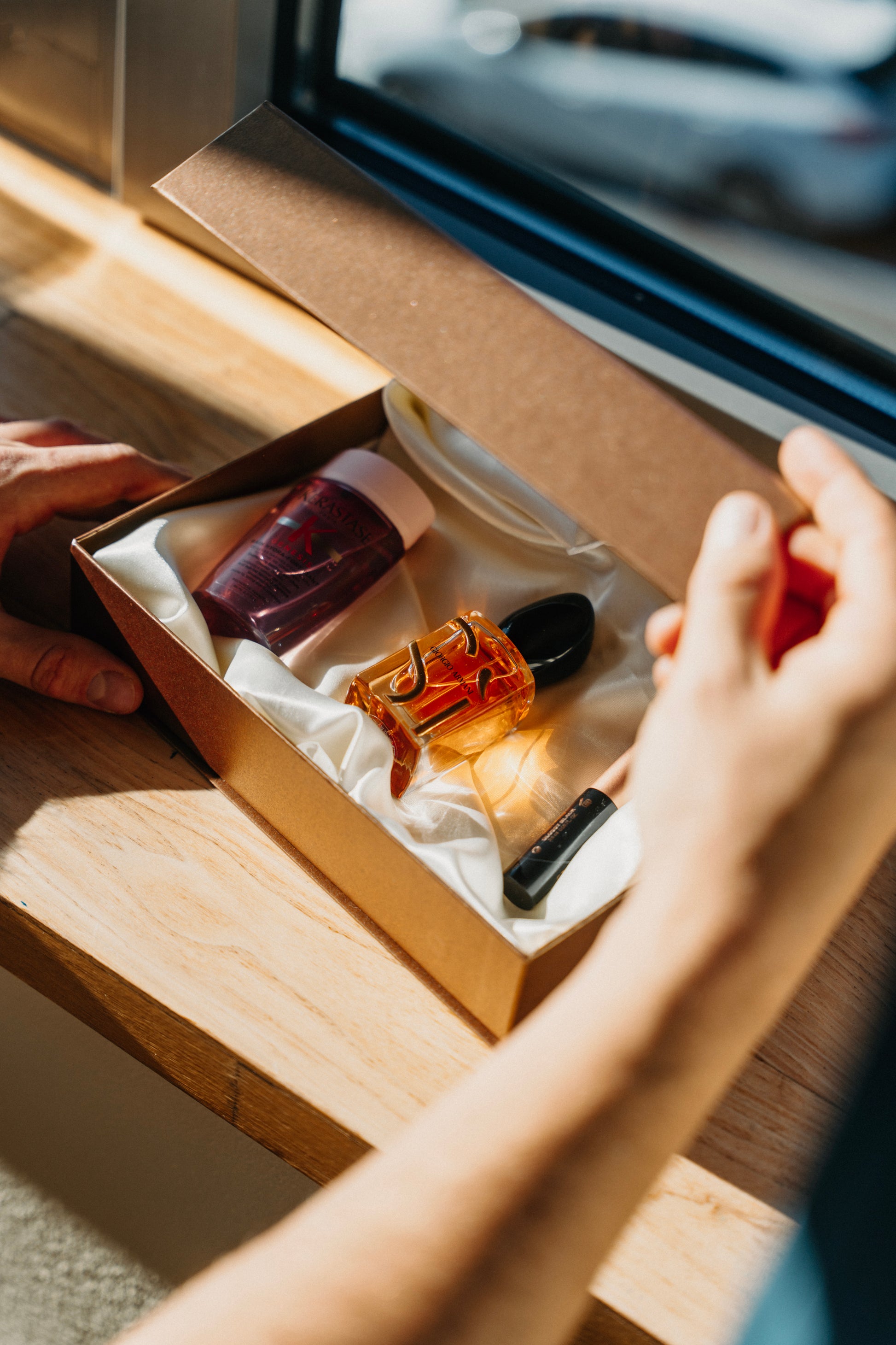 Nejčastěji je základem parfém, ke kterému přidáme další pečlivě vybrané kousky. Třeba rtěnku, řasenku nebo dobrý krém na obličej či tělo. Kombinace je pokaždé jiná, vybraná na míru.